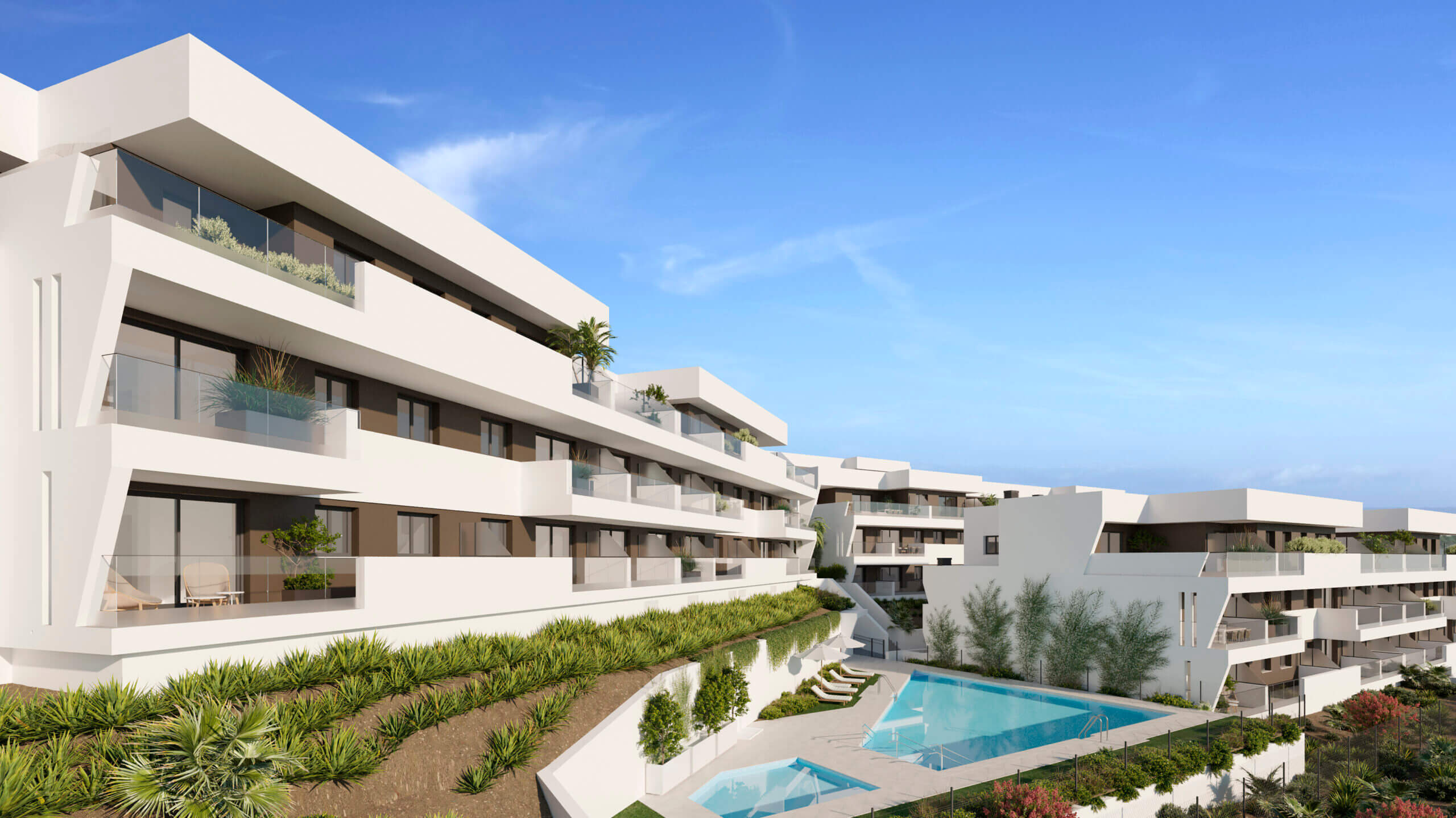 Kompleks znajduje się zaledwie 5 minut jazdy od plaży i jest otoczony przez wszystkie niezbędne usługi: przedszkola, szkoły, supermarkety, ośrodek zdrowia, ośrodki sportowe i kulturalne, tereny rekreacyjne, itp.